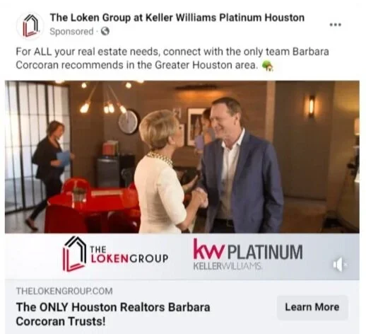 With the goal of leveraging The Loken Group’s endorsement by Barbara Corcoran, a real estate mogul, business expert, and Shark on ABC’s Shark Tank, we created an ongoing marketing campaign comprised of digital ads and short videos promoting the team as the only real estate group in the Greater Houston area recommended by Corcoran.